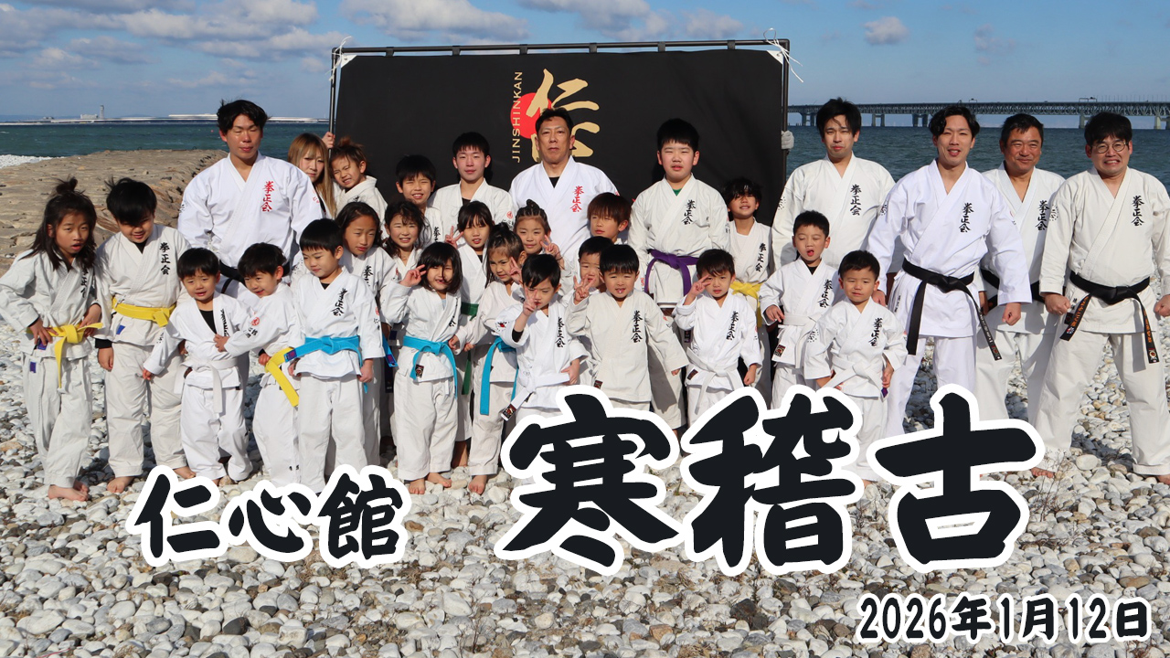 2026年寒稽古 2026.01.15 令和8年1月12日(日) 仁心館は今年も、真冬の海にて恒例の寒稽古を行いました。 今の時代だからこそ、あえて日本古来の「寒行」に挑戦する――それは、空手道の伝統と精神を大切にし、次の世代へと受け継いでいきたいという想いがあるからです。 幼児から大人まで、幅広い世代の門下生が寒空の下、心身を鍛え、最後まで稽古をやり遂げました。 また、初段の免状授与も執り行われ、節目となる一日となりました。 稽古後は感謝の気持ちを込め、全員で海岸清掃を行い帰路につきました。 これまでの寒稽古